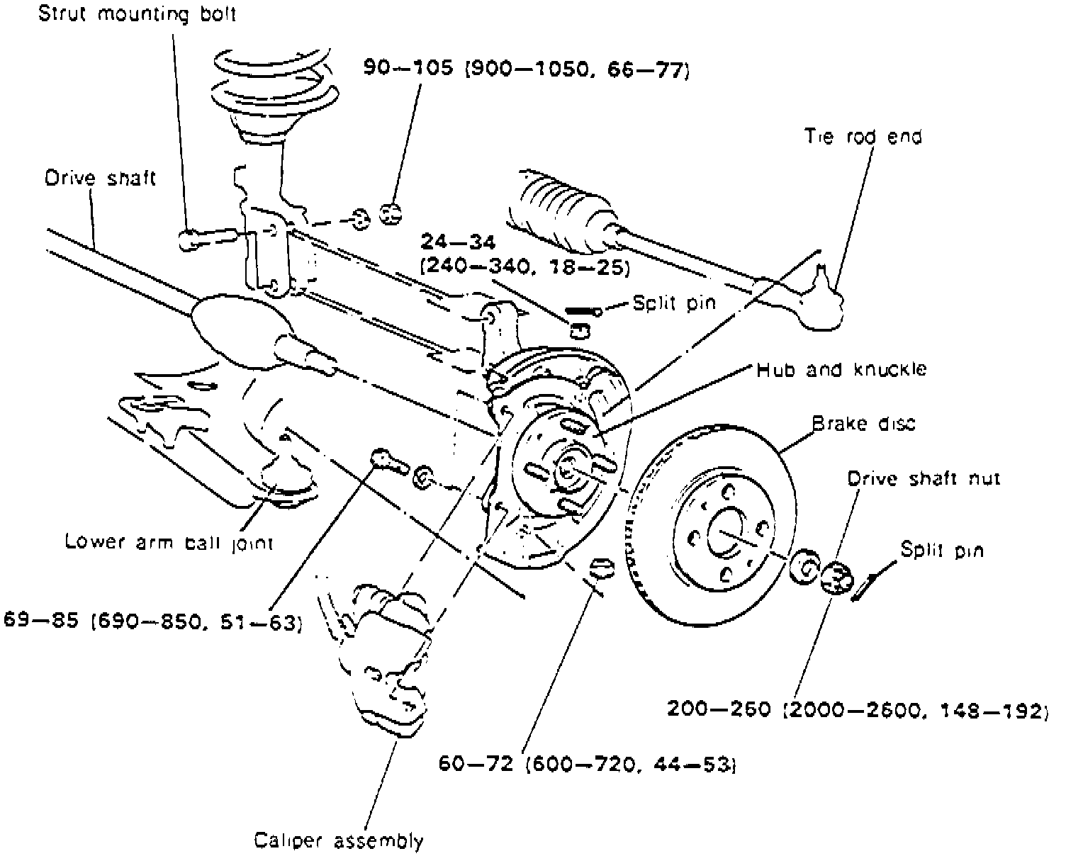1. Remove driveshaft nut, then raise and support front of vehicle.2. Remove front wheels, then disconnect brake caliper assembly and support using suitable wire.