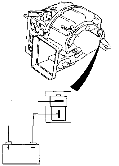 6. Connect the blower motor terminals directly to the battery and check that the blower motor operates smoothly.