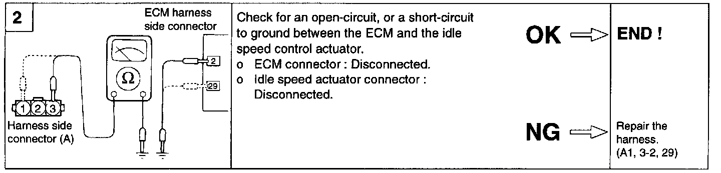 Open or short circuit is observed in idle air control system when ignition switch is turned on.