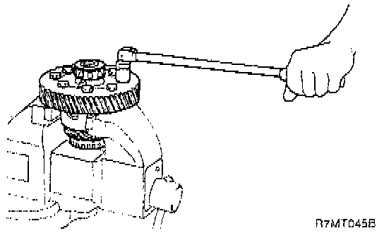 2. Remove the differential drive gear retaining bolts and remove the differential drive gear from the case.