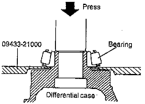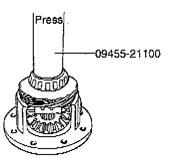 7. Install the taper roller bearings on both sides of the differential case using the special tool (09455-21100) or equivalent.