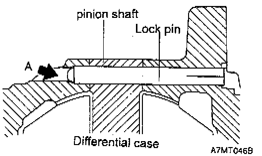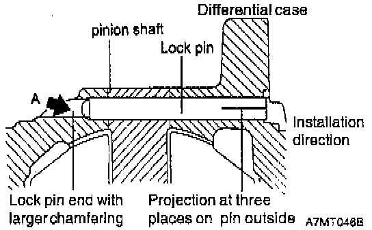 b. The lock pin head must be sunk below the flange surface of the differential case.