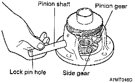 6. Align the pinion shaft lock pin hole with the case lock pin hole and insert the lock pin.