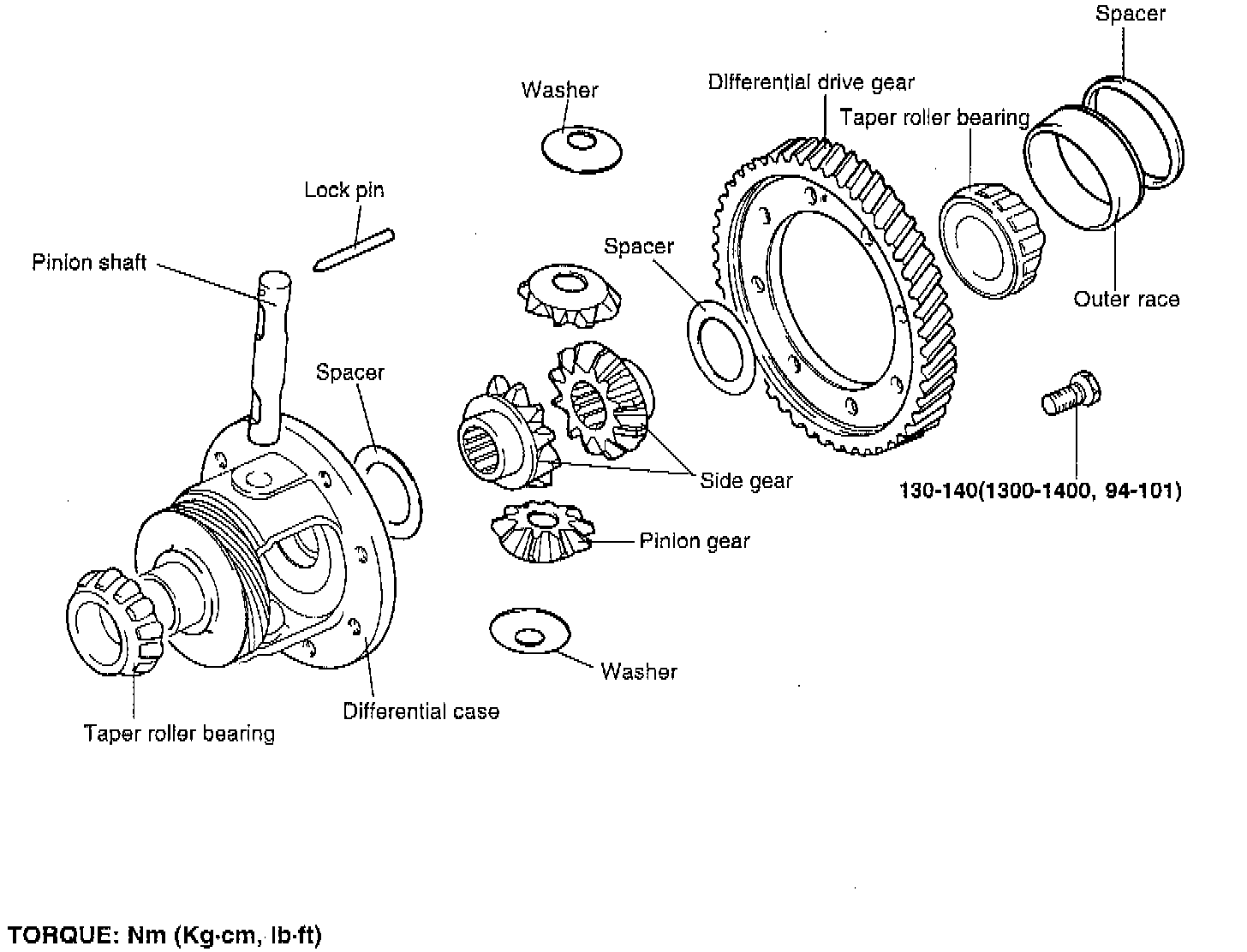Differential drive gear bolt: 130-140 Nm (94-101 ft. lbs.).