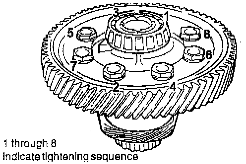 8. Apply specified sealant to the entire threads of the bolts. Tighten to specifications using the sequence shown in the illustration.