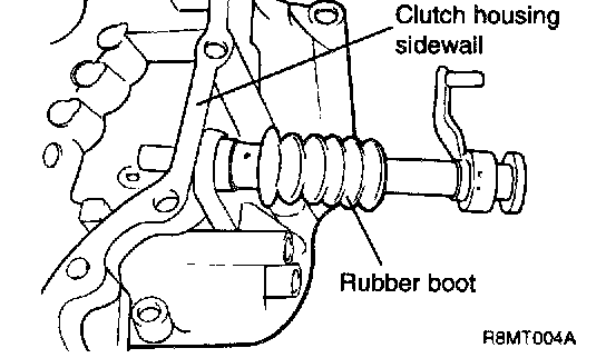 1) After inserting the rubber boot onto the control shaft, insert the control shaft into the clutch housing.