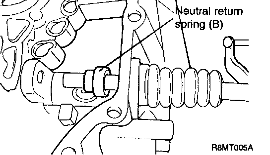 NOTE: Larger diameter of the neutral return spring (B) should be toward the side wall of the clutch housing as shown above.