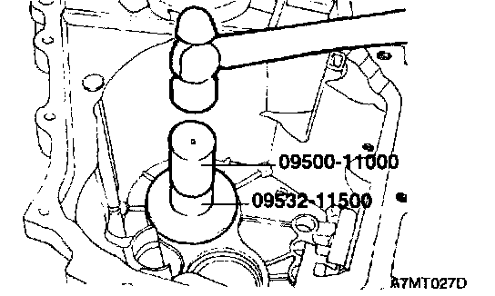 28. When installing, make sure that the slit of the spring pin is aligned with the center line of the shift rail.
