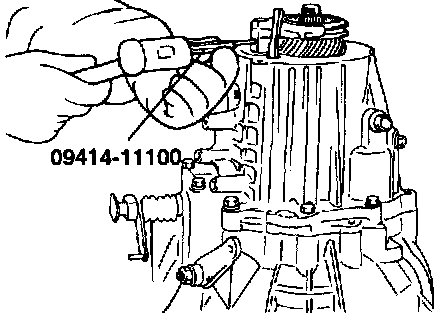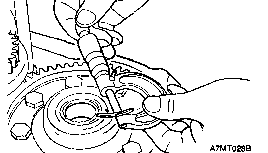 24. Install the snap ring, the 5th speed gear, needle roller bearing, synchronizer ring and synchronizer hub.