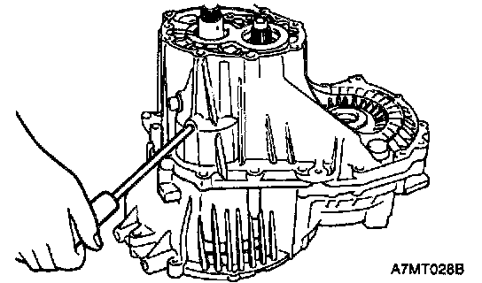 2) Install the transaxle case temporarily and tighten the bolts to the specified torque, then remove the transaxle case.