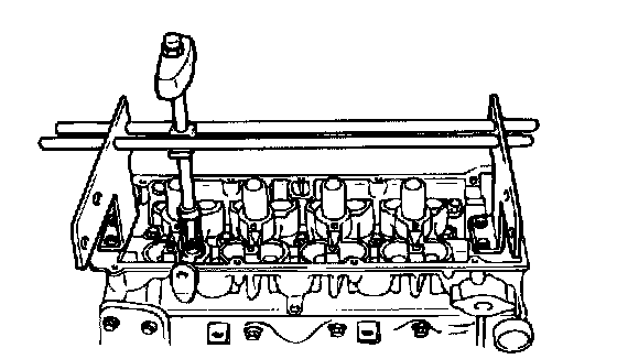 REMOVAL1. Using the special tool, Valve Spring Compressor (09222-28000) and Valve Spring compressor holder (09222-29000) or equivalent, remove the retainer lock. Next remove the spring retainer, valve spring, spring seat and valve.