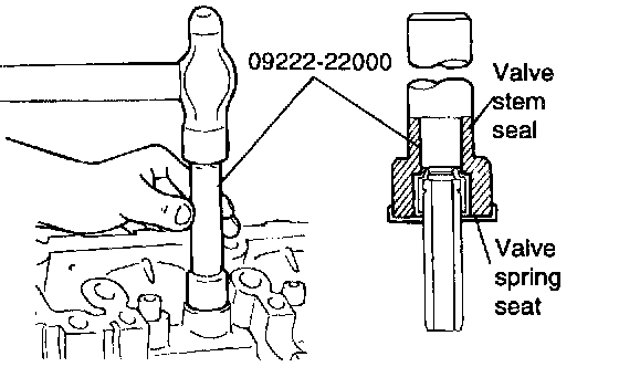 To install, fit the seal in by lightly tapping the Special Tool, Valve Stem Oil Seal Installer (09222-22000) or equivalent.
