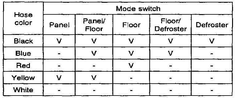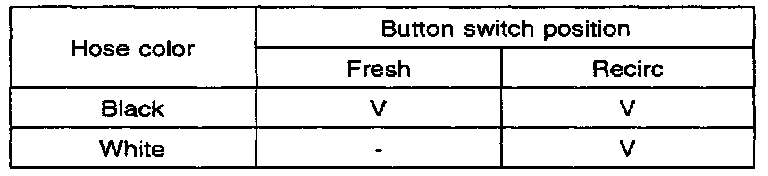 4. Check for vacuum hiss from the mode switch and vacuum hoses. and inspect for air flow between each hoses when the mode switch is at the each positions as shown above.