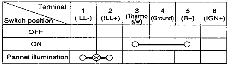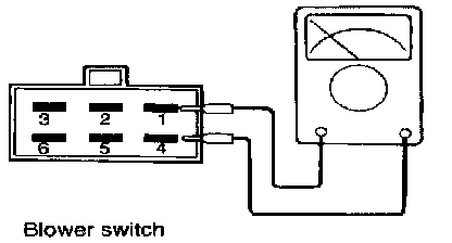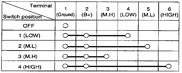 BLOWER SWITCH1. Check for continuity between terminals as shown below.