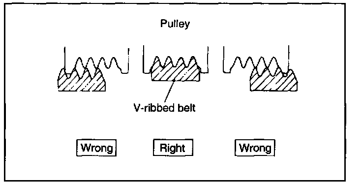 2. Make sure that drive belt is installed correctly. Check that the drive belt fits properly in the ribbed grooves.