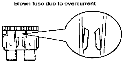 When a fuse is blown, there are two probable causes as follows. Which of the two causes is responsible can be easily determined by visual check after removing the fuses.1. Fuse blown due to over-current. Prior to replacing the fuse with a new one, check the circuit for a short and the related parts for abnormal condition. Only after the correction of a short or replacement of abnormal pans, should a fuse with same ampere rating be installed.