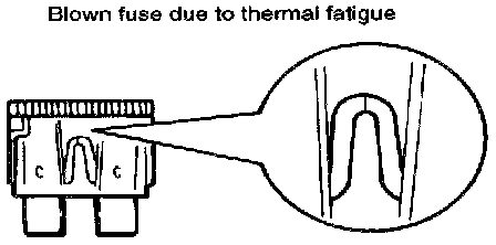 2. Fuse blown due to repeated current on-off. Normally, this type of problem occurs after fairly long period of use and hence is less frequent than the above type. In this case, you may simply replace with a new fuse of the same capacity.