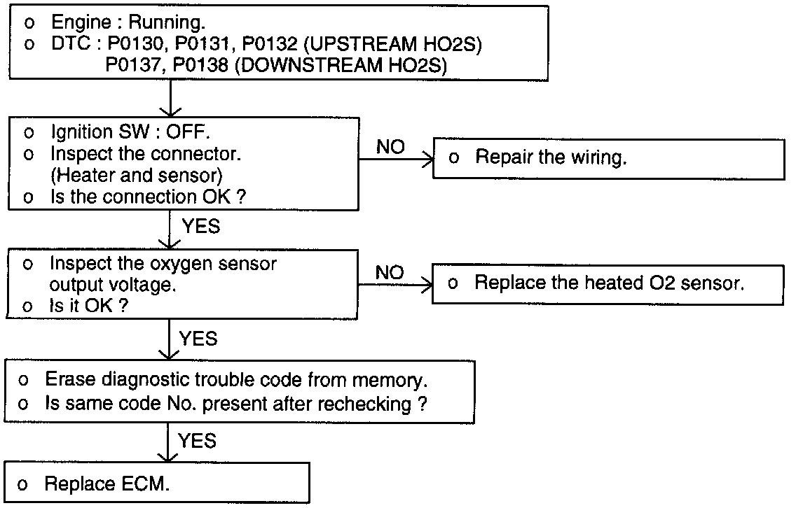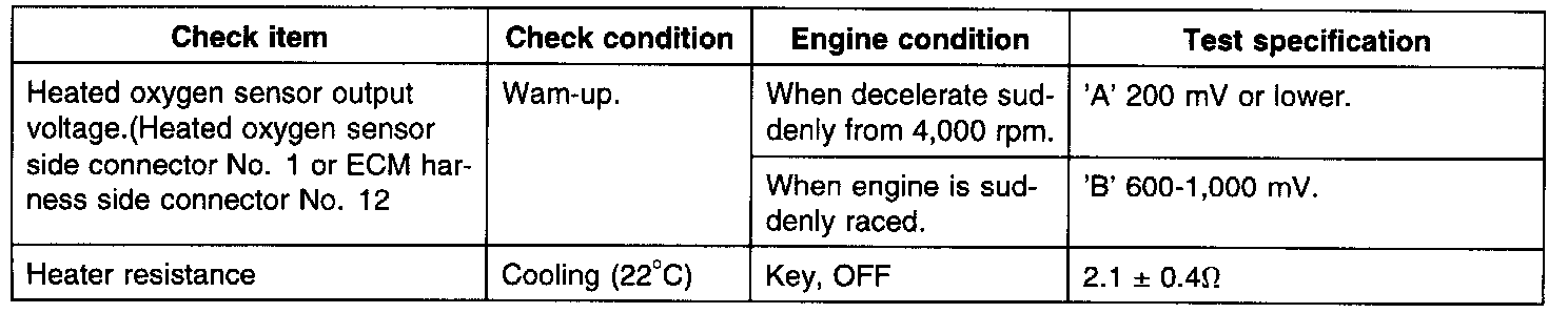 - If the heated oxygen sensor check has been normal, but the sensor output voltage is out of specification, check the following items related to the air fuel ratio control system.