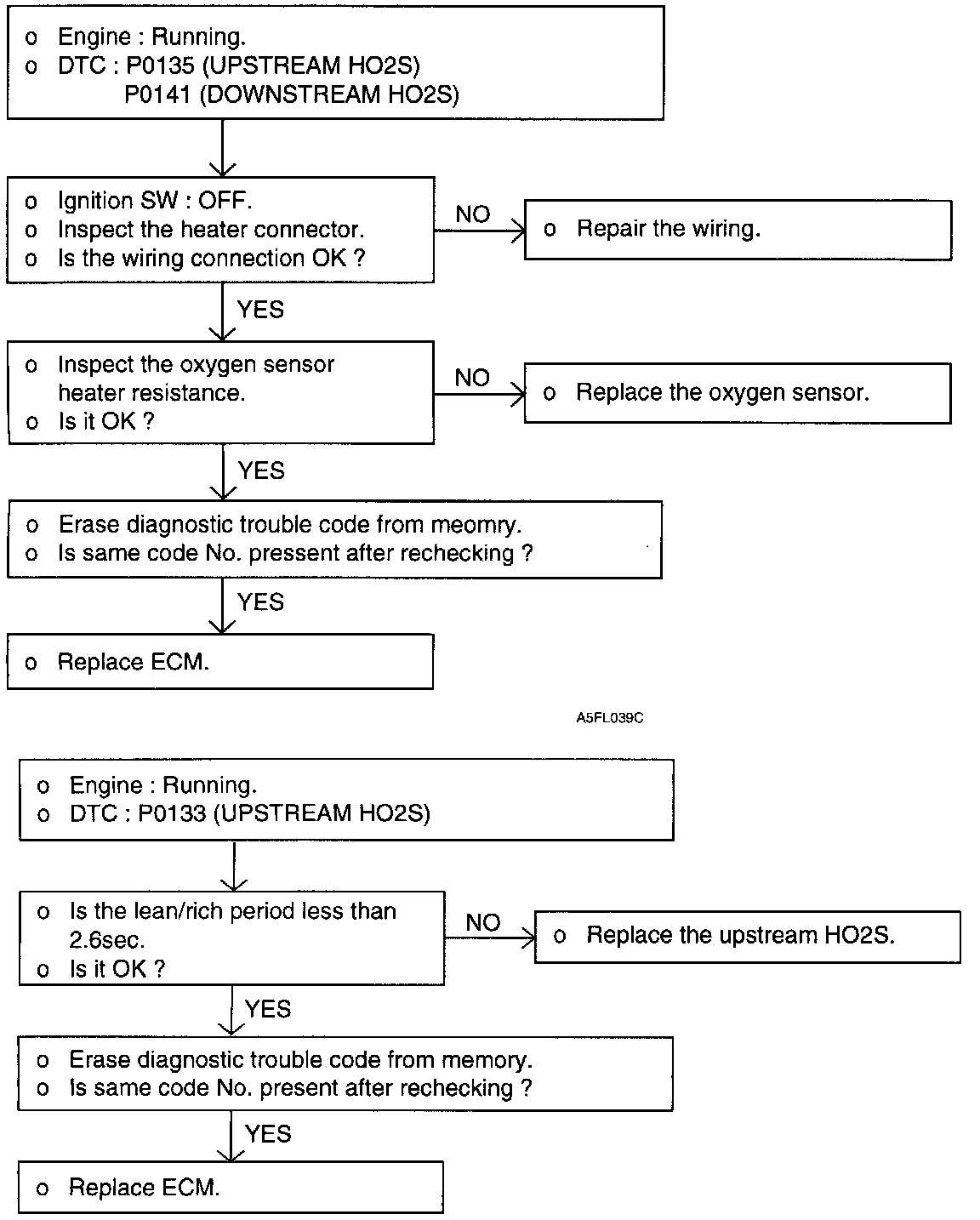 - When the lean/rich period is above 2.6 seconds in the condition that fully warm-up engine is 2,000-3,000 rpm and engine is above middle load.
