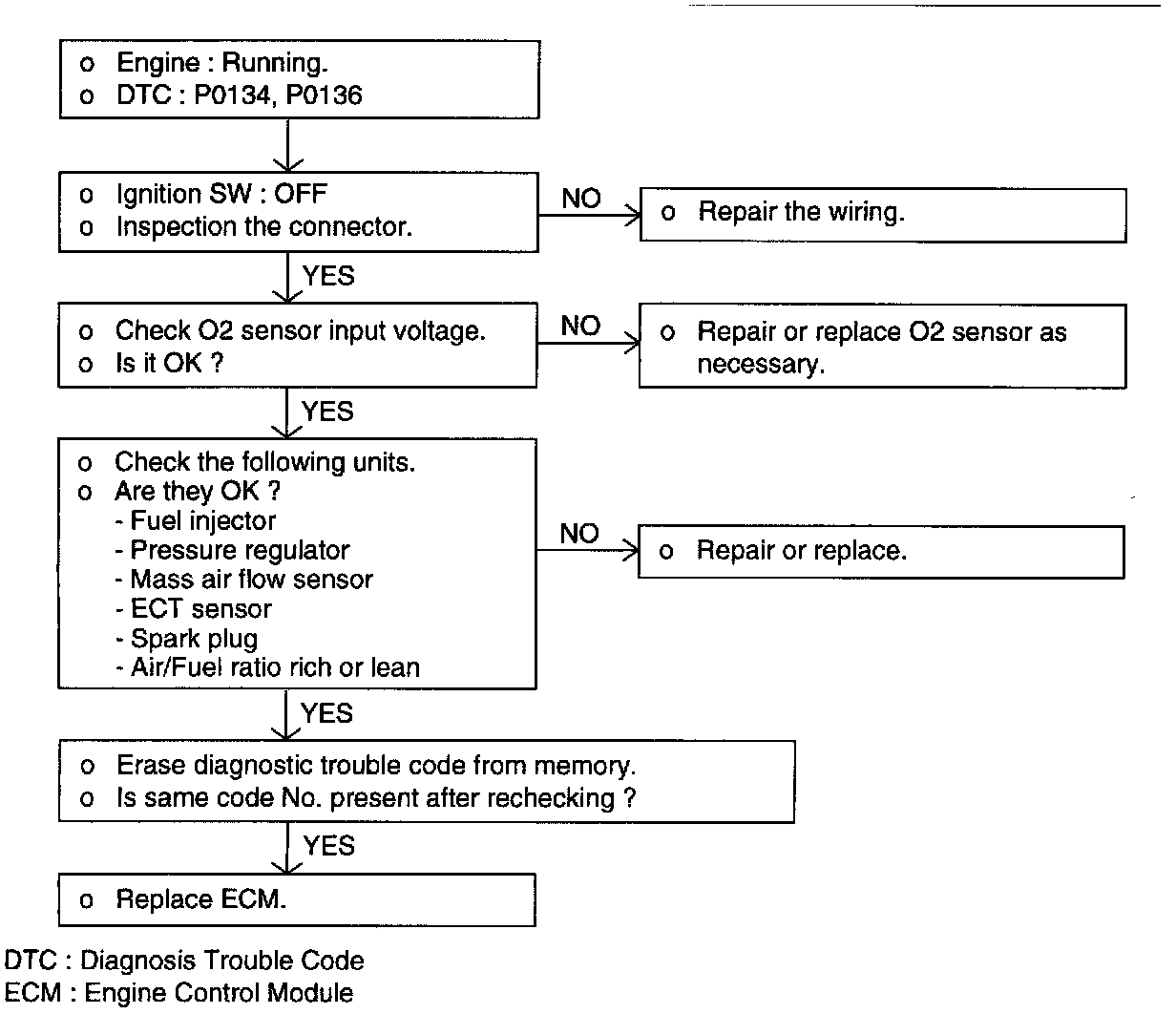 - When O2 sensor output voltage is maintained as following for above 50 sec.