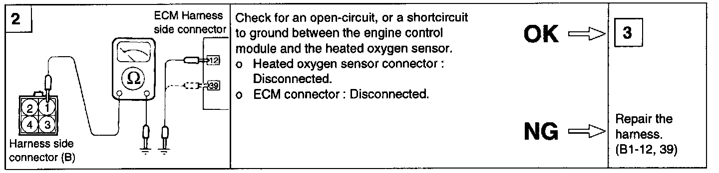 1. Disconnect the heated oxygen sensor connector, and measure the resistance between terminal 3 and terminal 4.