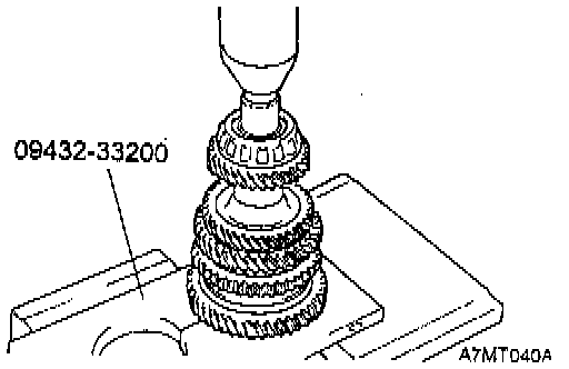5. Install the first-second speed gear synchronizer assembly over the output shaft using the special tool (09432-22000) or equivalent.