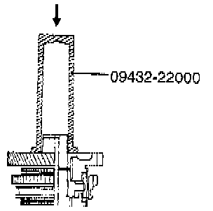 10. Install the rear side taper roller bearing using the special tool (09432-22000) or equivalent.