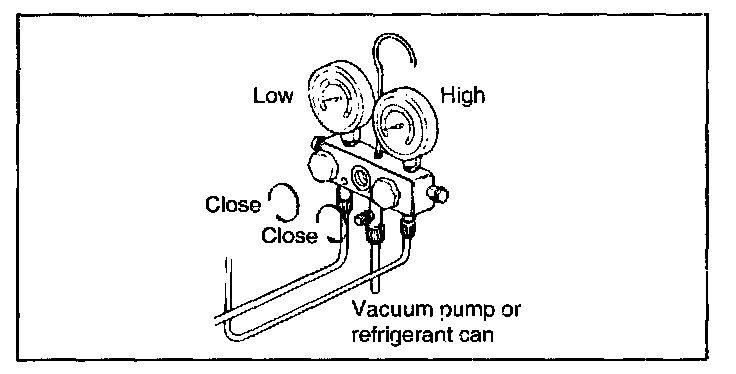 1. Close both hand valves of manifold gauge set.