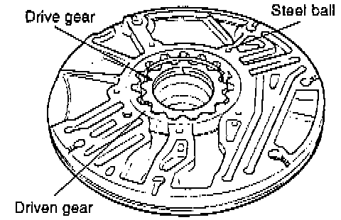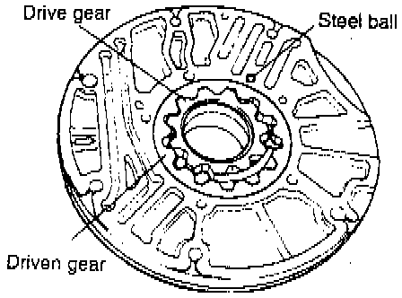 3. Remove the oil pump drive and driven gears from pump the housing.