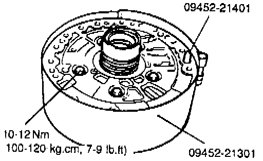 5. With the reaction shaft support properly positioned on the pump housing, using special tools (09452 - 21401, 09452 - 21301) or equivalents, tighten the five bolts to 10-12 Nm (84-108 inch lbs.).