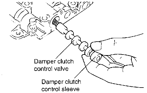 1. Install the lower valve body, the damper clutch control spring, damper clutch control valve, and damper clutch control sleeve.