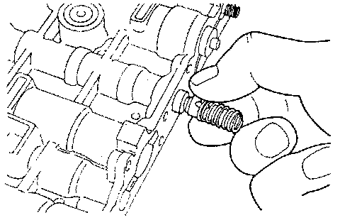 4. Install the reducing spring, adjustment screw, and end cover; then, using the special tool, tighten the bolts at the specified torque.