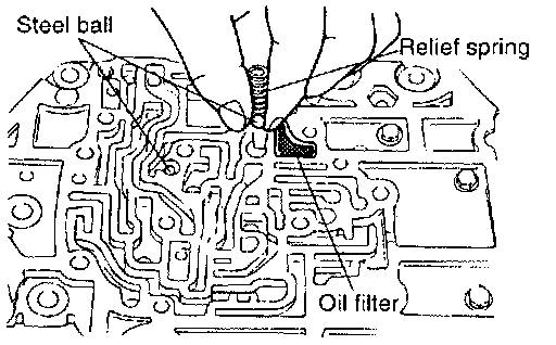 23. Install, to the intermediate plate, the oil filter, the two steel balls, and the spring.