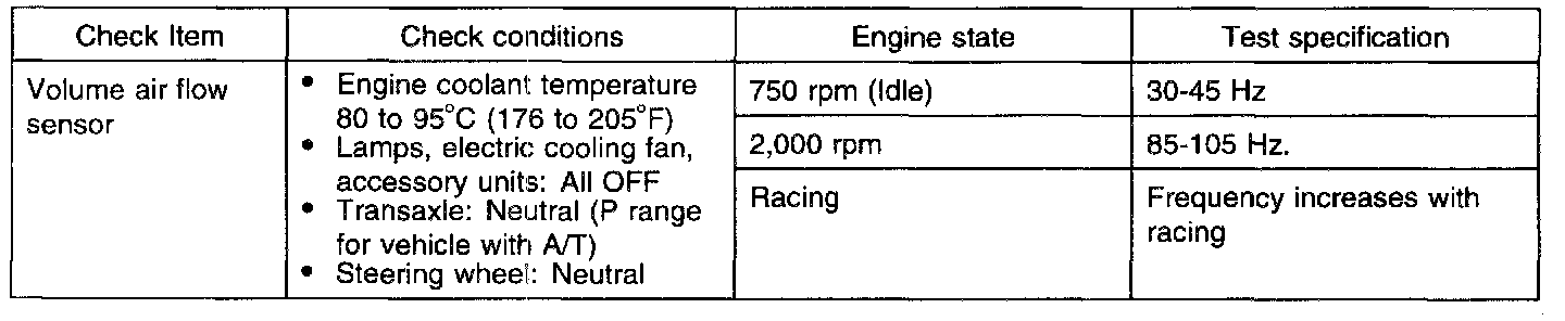 NOTE: When the vehicle is new (within initial operation of about 500 km [300 miles]), the volume air flow sensor output frequency may be about 10% higher.