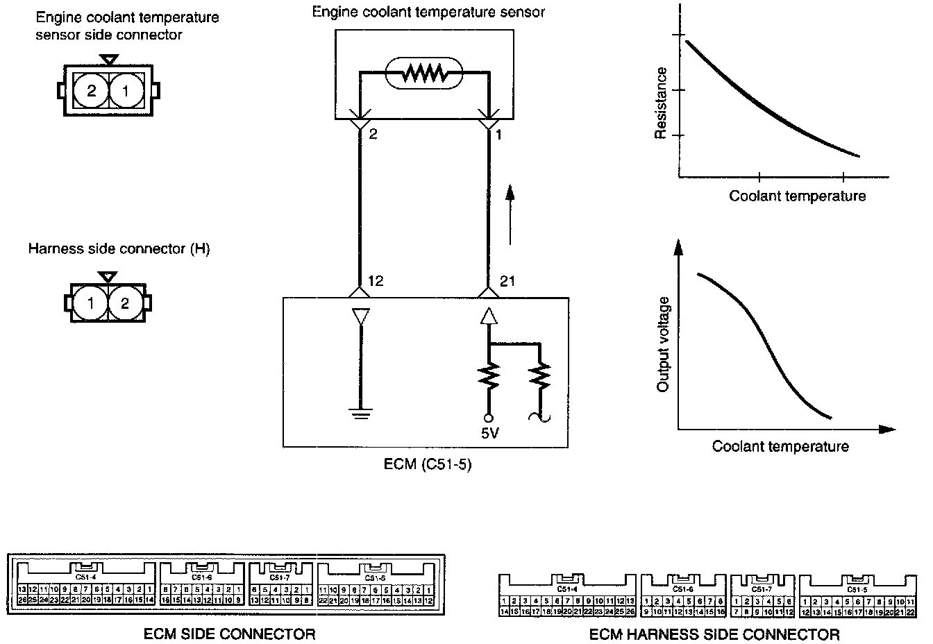 If the fast idle speed is not enough or the engine gives off dark smoke during the engine warm-up operation, the engine coolant temperature sensor might be the cause.