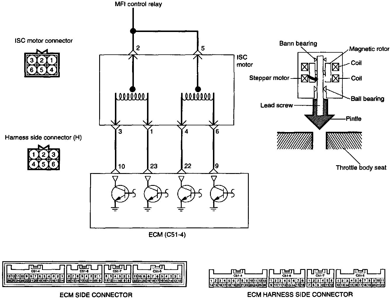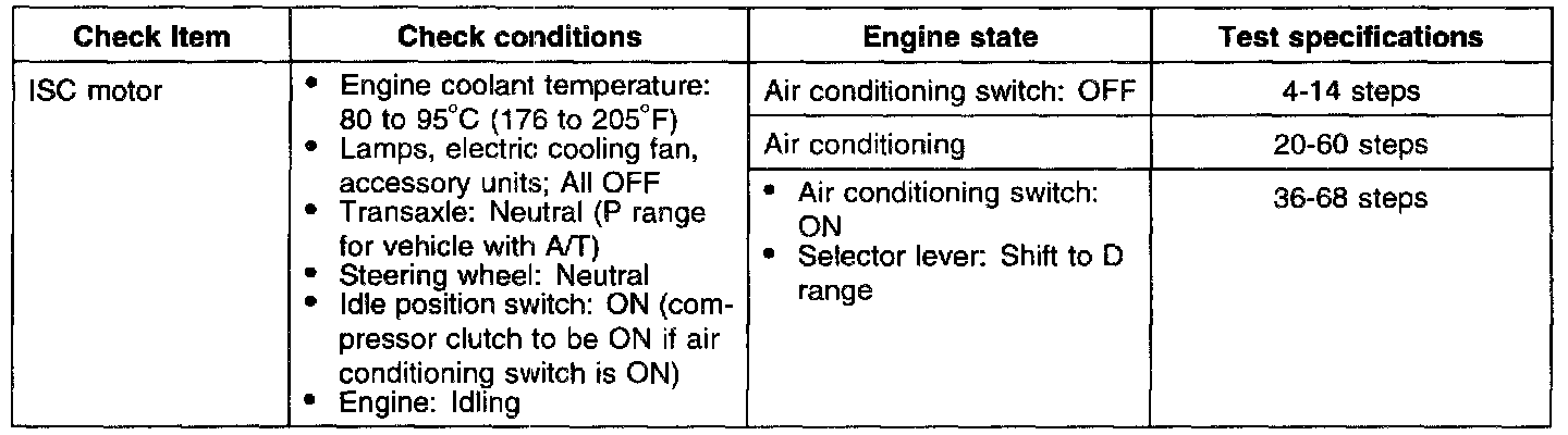 2. If the idle speed control motor is normal but the stepper motor steps are out of specification, check the following: