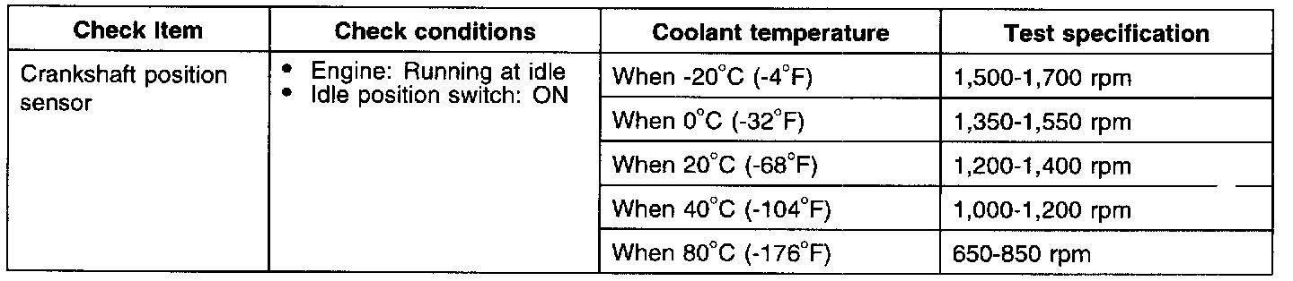 3. If the engine can be run at idle even if the crank angle sensor reading is out of specification, check the following:
