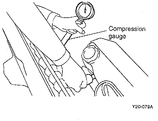 10. If a cylinder's compression or pressure differential is below the specification, add a small amount of oil through the spark plug hole, and repeat steps 6 through 9.