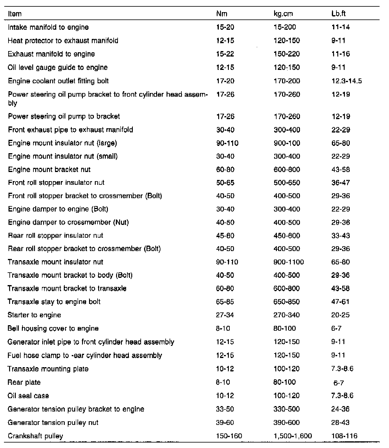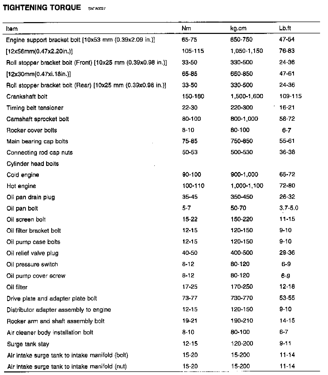Intake Manifold (Lower) To Engine 15-20 Nm (11-14 ft. lbs.)