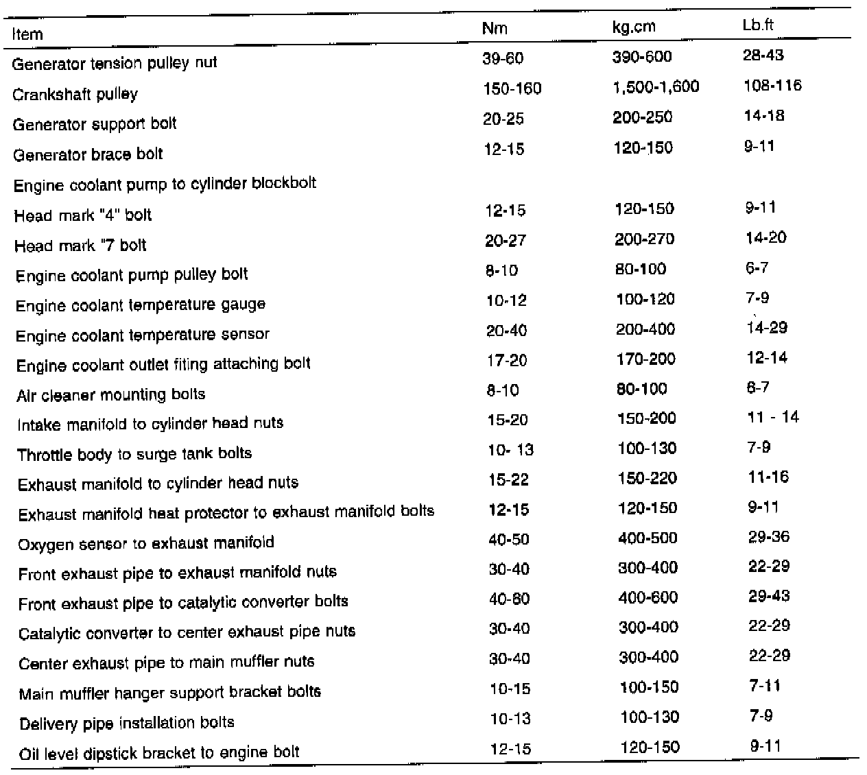 Upper Manifold To Lower Manifold 15-20 Nm (11-14 ft. lbs.)