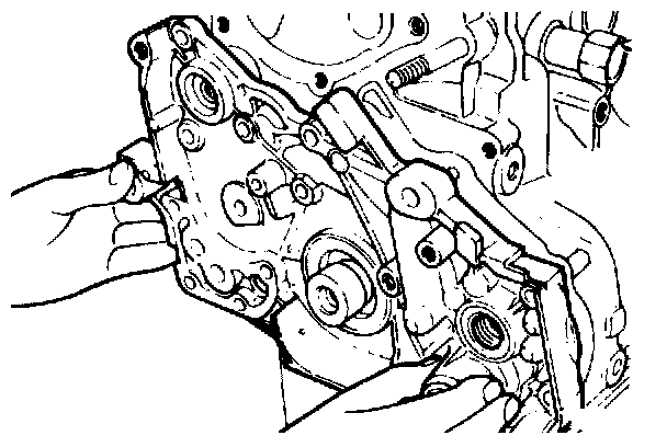 13. Remove the oil pump cover from the front case.