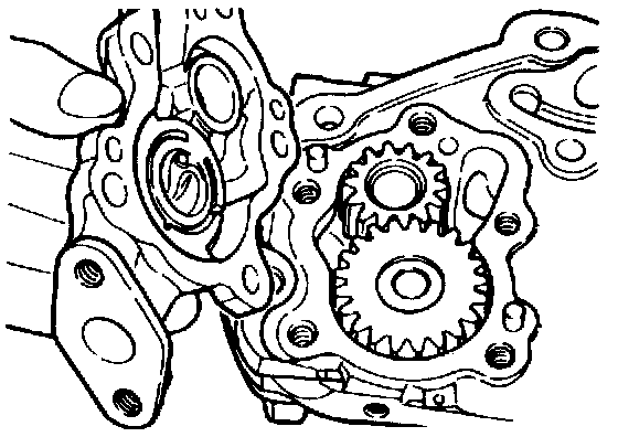2. Ensure that there is no ridge wear on the contact surface between the front case and gear surface of the oil pump cover.