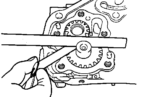 1. Assemble the oil pump gear to the front case and rotate it to ensure smooth rotation with no looseness.
