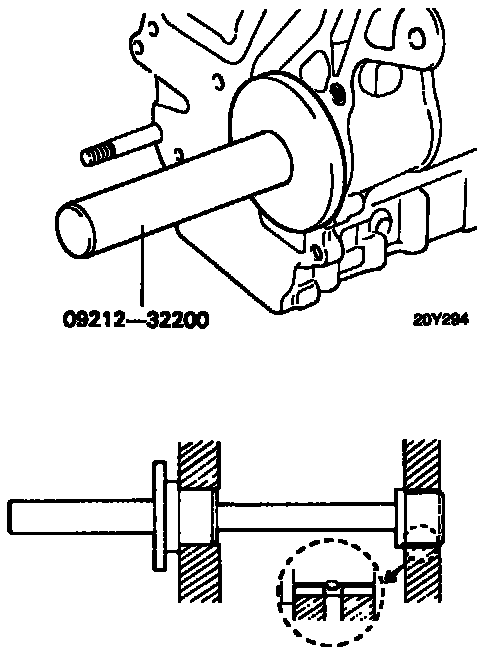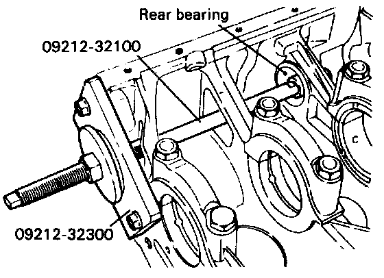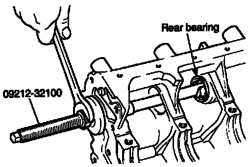 3. Using special tool, remove the left counter balance shaft rear bearing from cylinder block. At this time, install special tool on front surface of cylinder block to hold bearing puller.