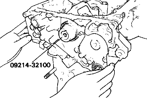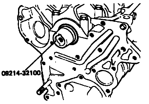 3. Set the special tool (09214-32100) on the front end of crankshaft and apply a thin coat of engine oil to outer circumference of the special tool to install the front case.