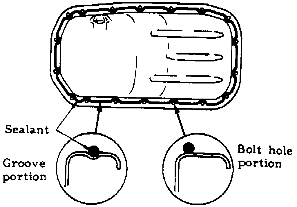 9. Apply sealant into the groove of the pan flange as shown.