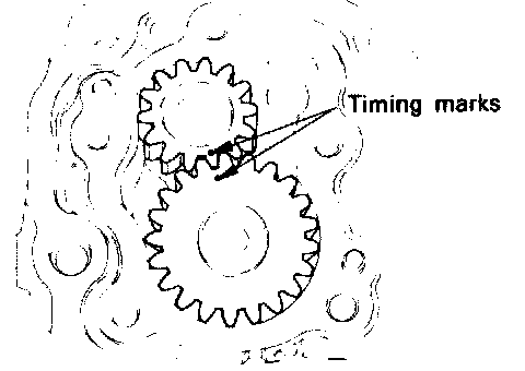 1. Apply engine oil to the gear and align the two timing marks.