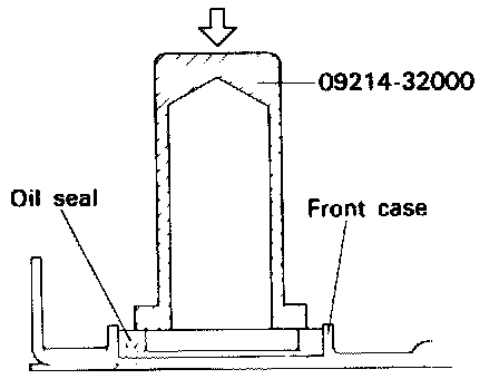 2. Using the special tool, Crankshaft Front Oil Seal Installer (09214-32000), install the crankshaft front oil seal into the front case.