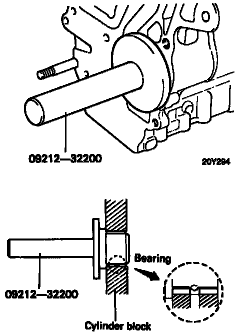 1) Apply engine oil to the rear bearing outer circumference and bearing hole in cylinder block.