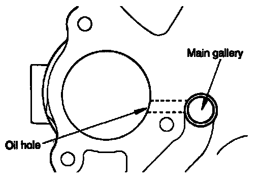 2) Make sure that bearing oil hole is aligned with oil hole of cylinder block.
